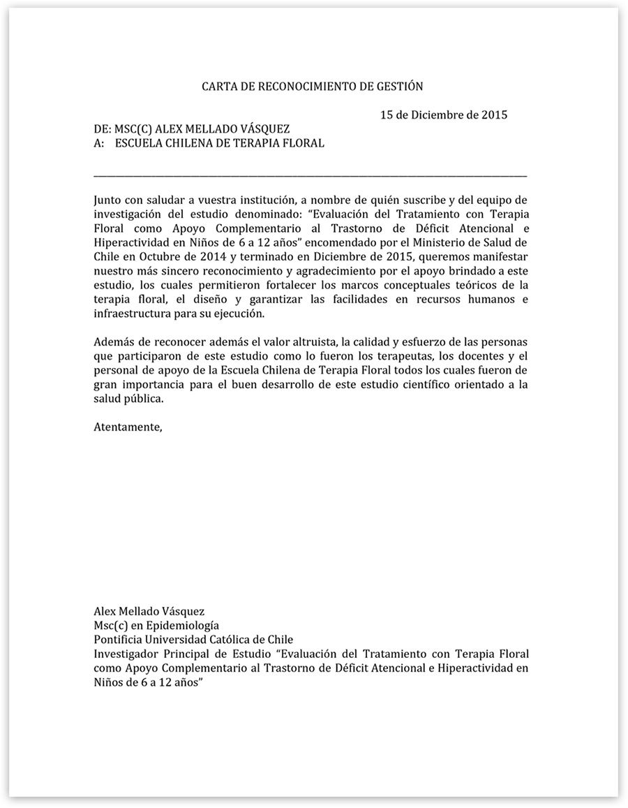 El Centro de Investigación de Terapia Floral (CIDETEF), depende de la Escuela Chilena de Terapia Floral. CIDETEF adhiere al Modelo y Programa Educativo de la Escuela Chilena de Terapia Floral.